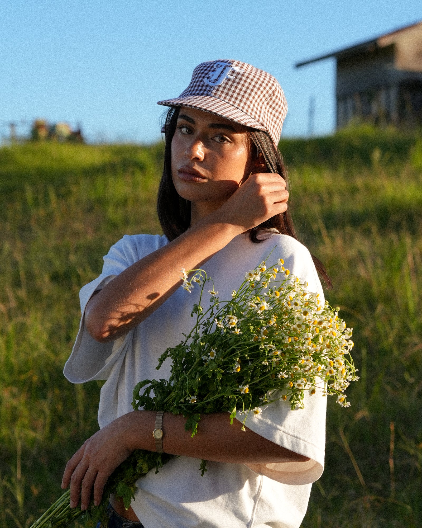 Picnic Letterman Cap - Short Brim 6 Panel - Brown/White Plaid