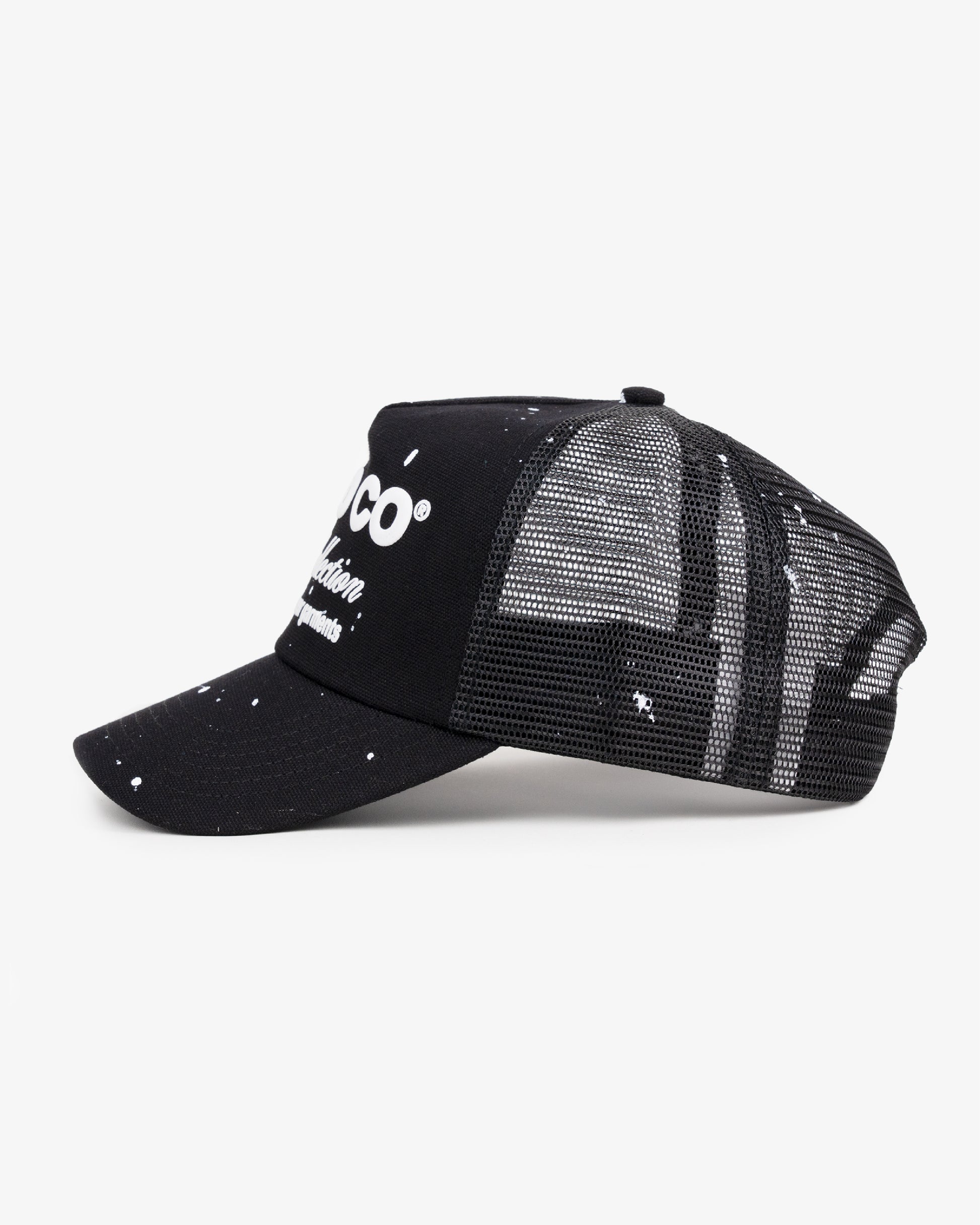 The Artist Cap features a bold puff print logo on a slightly structured canvas fabric. Designed with use in mind, the cap comes available in a unique, lightly paint flickered finish for a worn like expression. Coming available in our Ball Trucker Fit, the cap is made with a slightly fused canvas cotton front panel, pre curved brim and trucker mesh body.